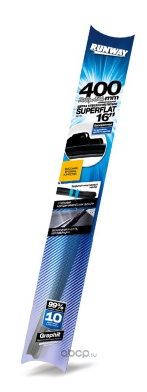 | RUNWAY | RW16U | Щетка стеклоочистителя бескаркасная универсальная SUPERFLAT 400 мм | ||