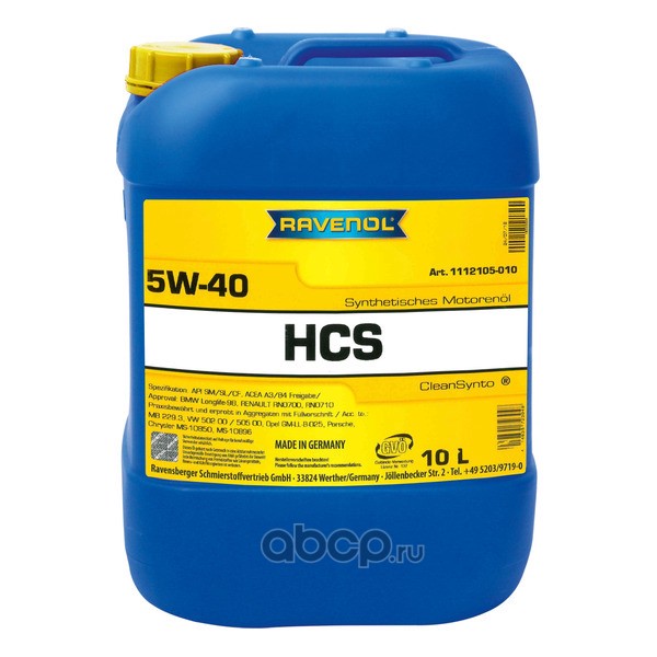 | Ravenol | 1112105010 | Масло моторное синтетика Ravenol HCS 5W-40 10 л. | ||