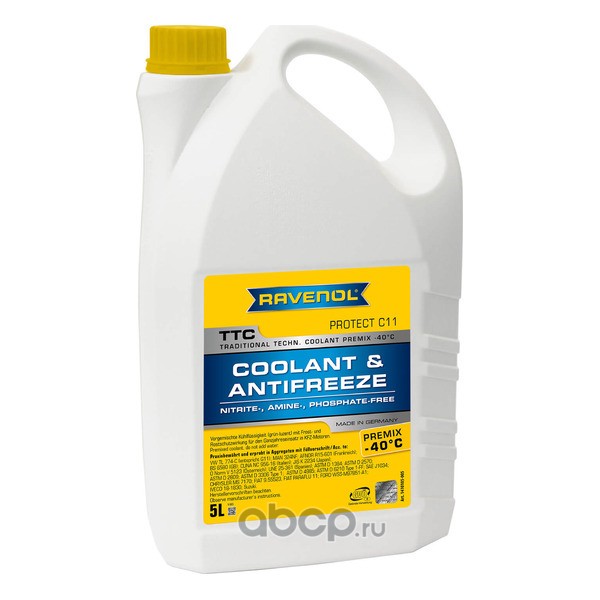 | Ravenol | 1410105005 | Антифриз RAVENOL TTC Protect C11 Premix -40C (готовый), 5 литров | ||