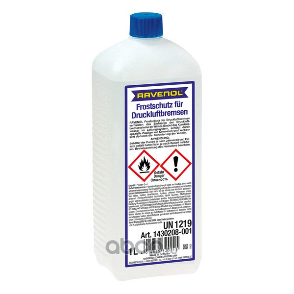 | Ravenol | 143020800101000 | Антифриз бесцветный RAVENOL Frostschutz für Druckluftbremsen, 1 литр | ||