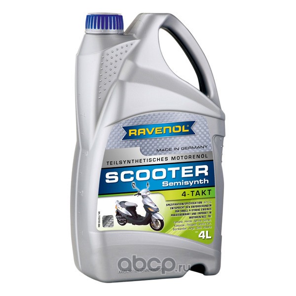| Ravenol | 1152155004 | Моторное масло для 4-T скутеров RAVENOL Scooter 4-Takt Teilsynth, 4 литра | ||