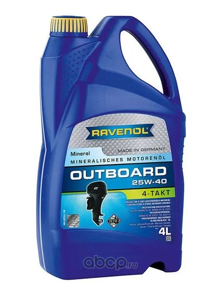 | Ravenol | 1163220004 | Моторное масло RAVENOL Marineoil PETROL 25W-40 mineral, 4 литра | ||