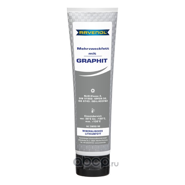 | Ravenol | 134010210004999 | Смазка с графитом RAVENOL Mehrzweckfett m. Graphit, 100 г | ||