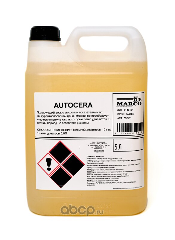 Водооталкивающий воск (концентрат) AUTOCERA, 5 л