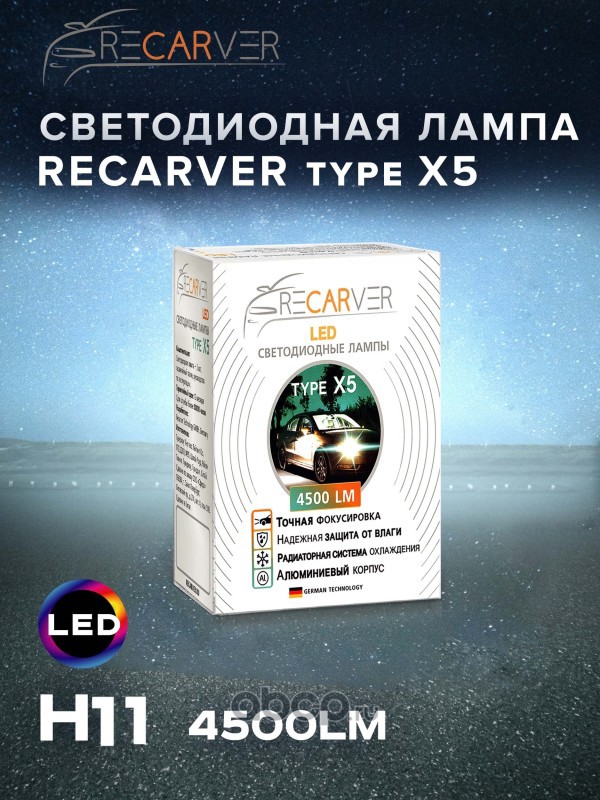 | Recarver | RTX5LED70H112 | Комплект ламп LED Recarver Type X5 H1 4500 lm (2шт) 6000K | ||