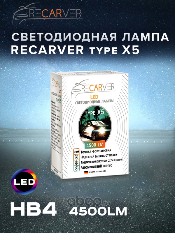 | Recarver | RTX5LED70HB42 | Комплект ламп LED Recarver Type X5 HB4 4500 lm (2шт) 6000K | ||