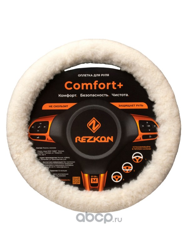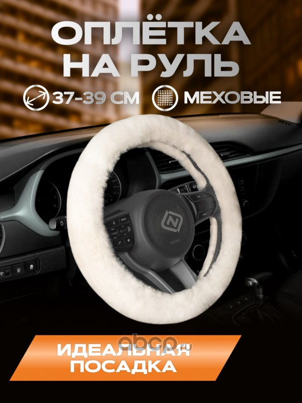 Rezkon 8003059000 Оплетка для руля каркасная «стандарт» овчина искусственная (белая) меховая