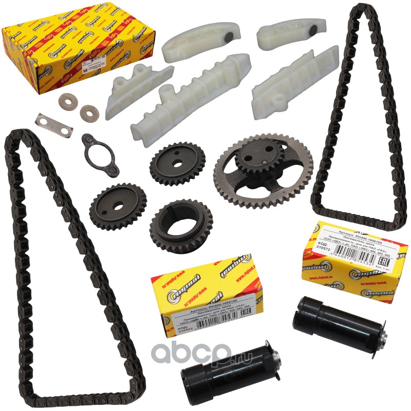 | Riginal | RG406390662503 | Комплект ГРМ (1-ряд.цепи Евро-4,звездочки,башмаки,успокоители) дв.406-409 с подш. Riginal | ||