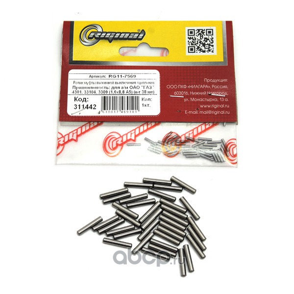 | Riginal | RG117569 | Ролик муфты выжимной Г-4301, 33104, 3309 (1,6х8,8 А5) (к-т 38 шт) Riginal |