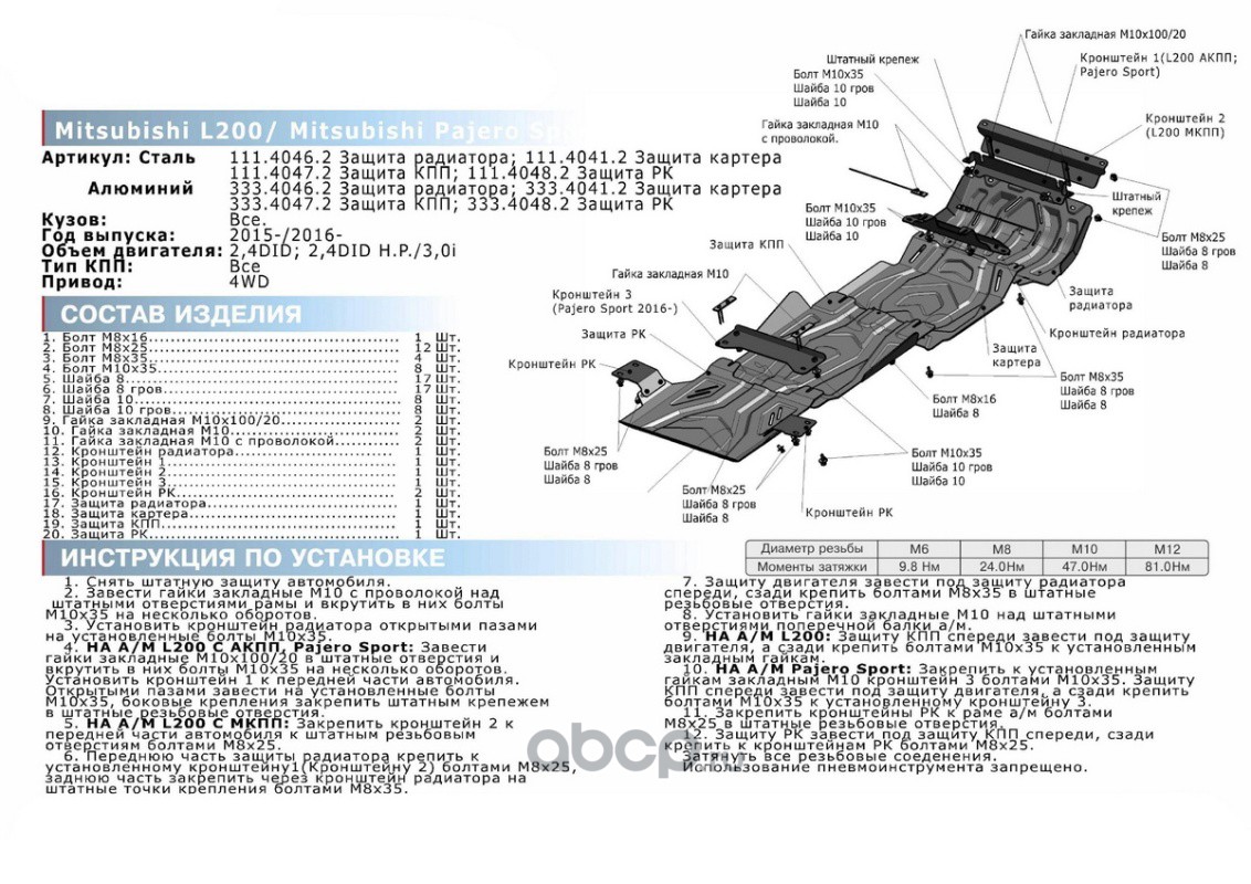 | Rival | K11140463 | К-т защит Fiat Fullback/Mitsub L200/Pajero Sport | ||