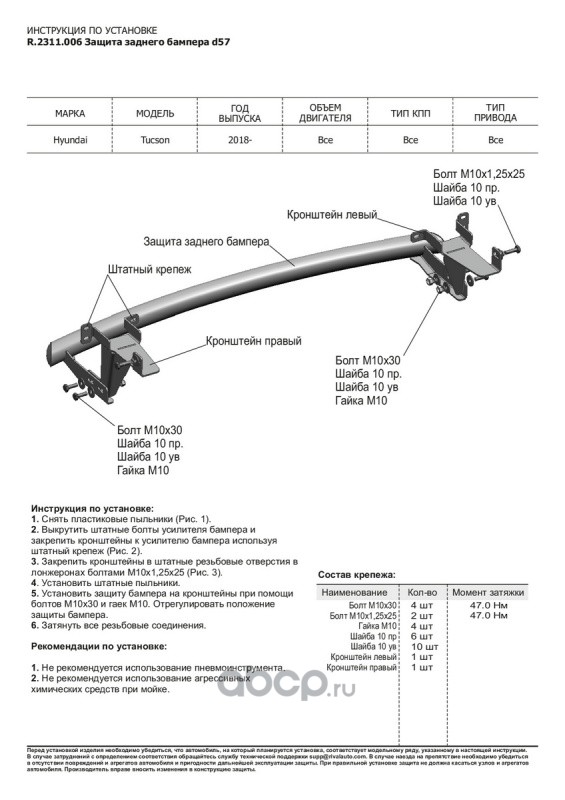 | Rival | R2311006 | Защита заднего бампера |