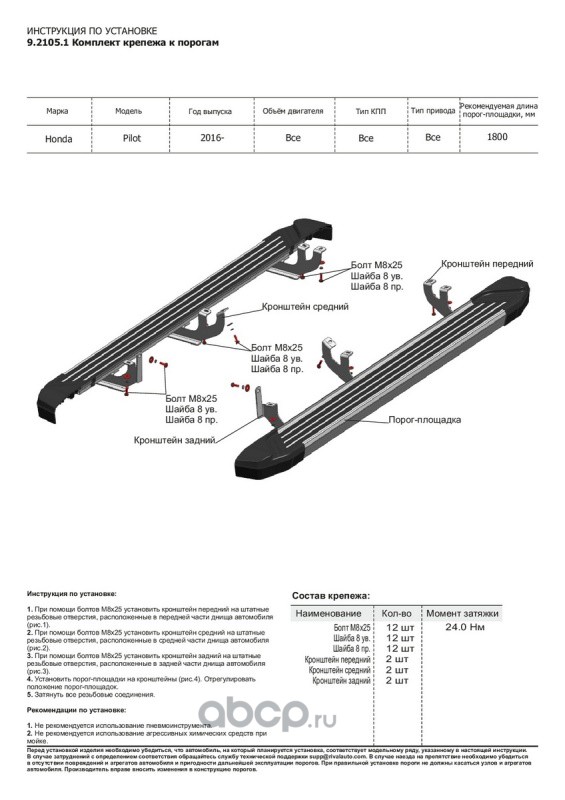 | Rival | D180AL21051 | Пороги Bmw-Style круг Honda Pilot 16-19 180 см, al | ||