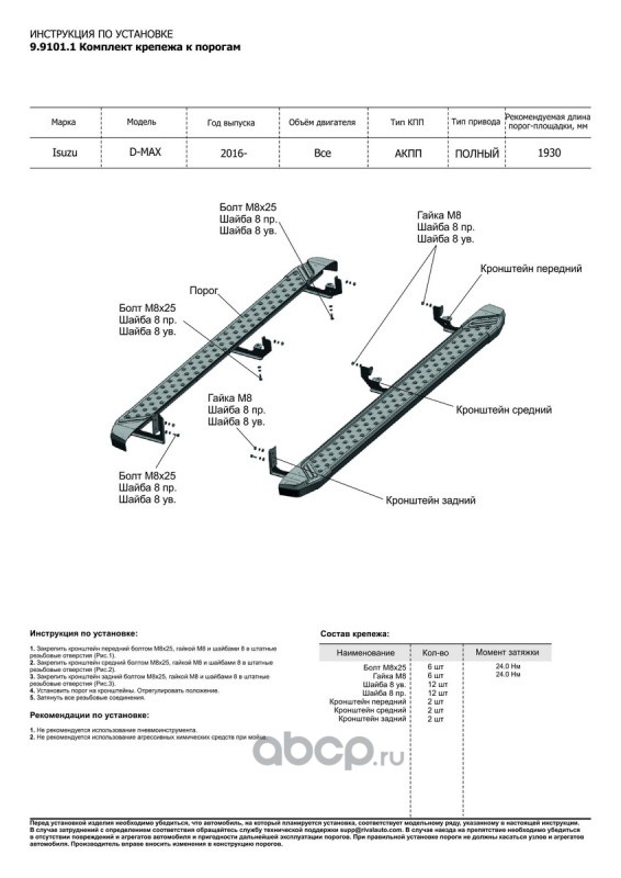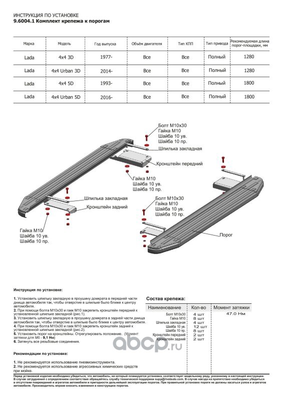 | Rival | F180AL60041 | Пороги Silver ВАЗ 2131 4x4 5дв (вкл. Urban) 93- al | ||