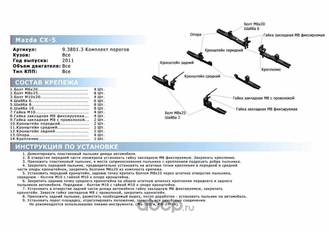 Комплект крепежа к порогам Rival для Chery Tiggo 5 I поколение 2014-2020, сталь, 9.0902.1