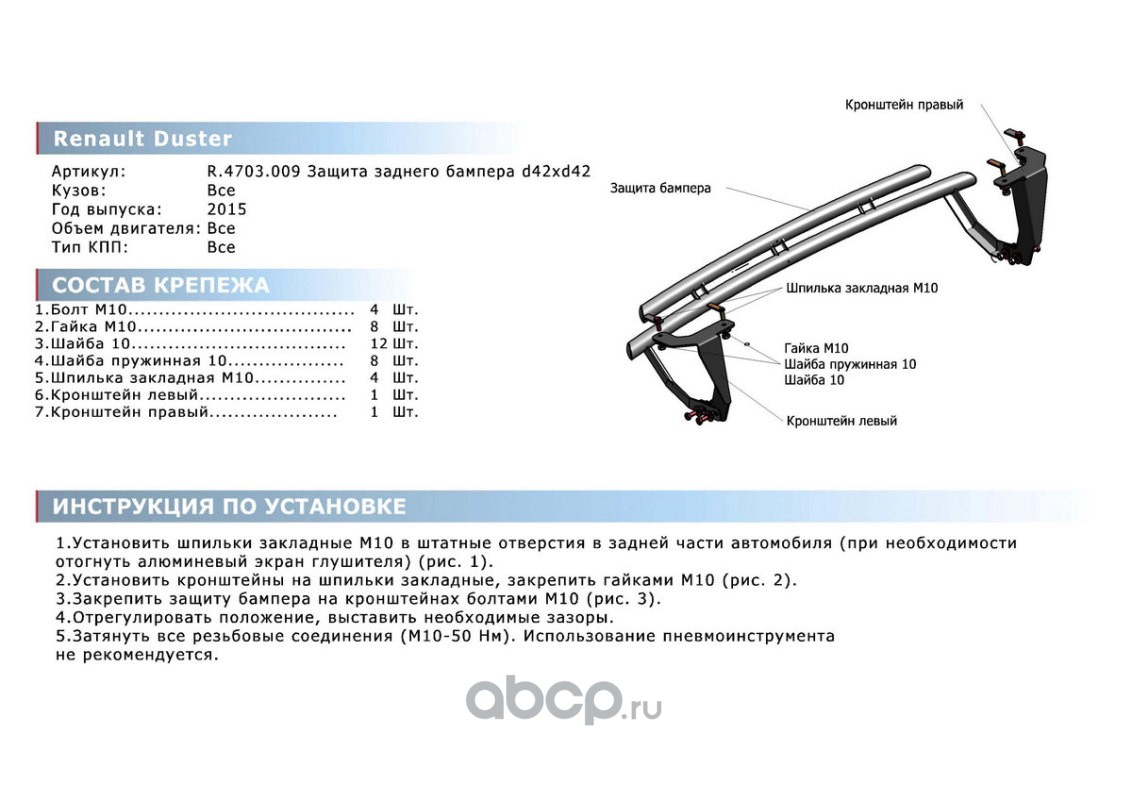 | Rival | R4703009 | Защита заднего бампера d42+d42 | ||