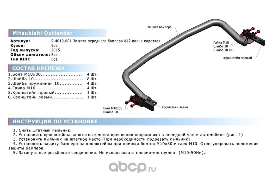 | Rival | R4010001 | Защита переднего бампера d42 волна короткая | ||