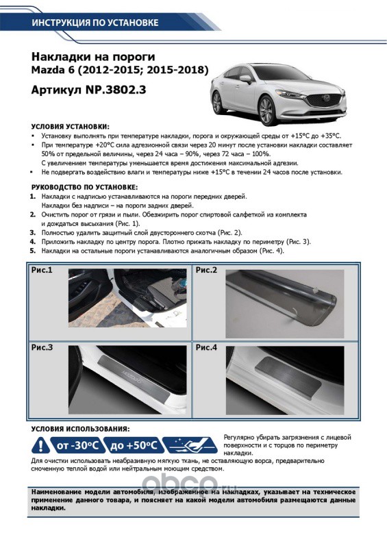 | Rival | NP38023 | Накладки порогов Mazda 6 III GJ 2012-2018 2018- | ||