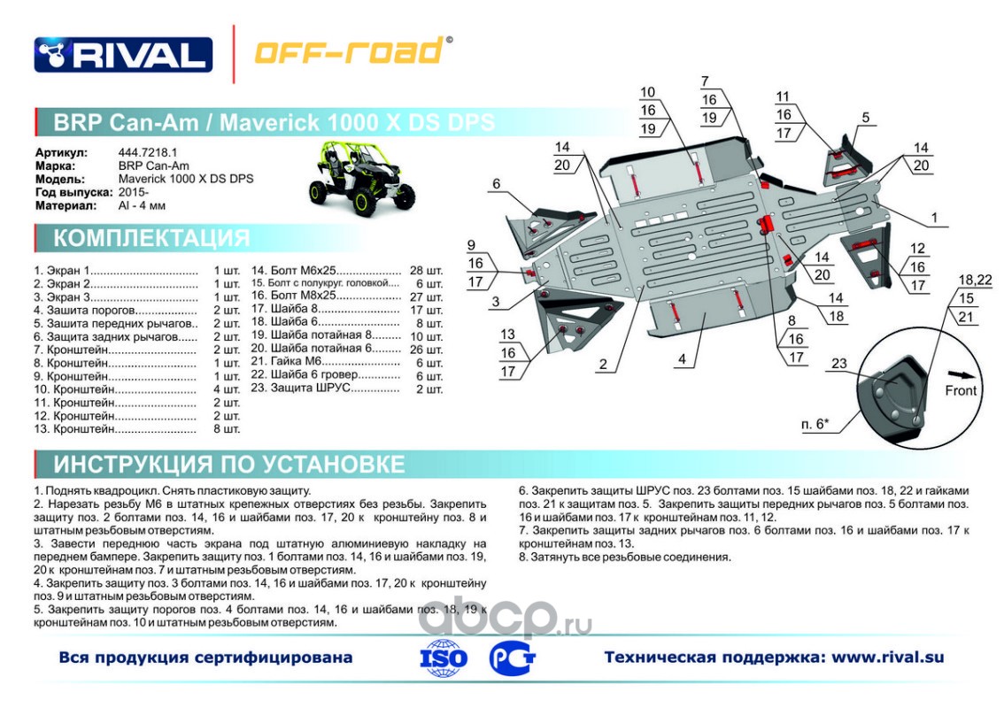 Защита картера Rival для BRP (Can-Am) Maverick 1000 X DS DPS 2015-, 4.7218.1-2