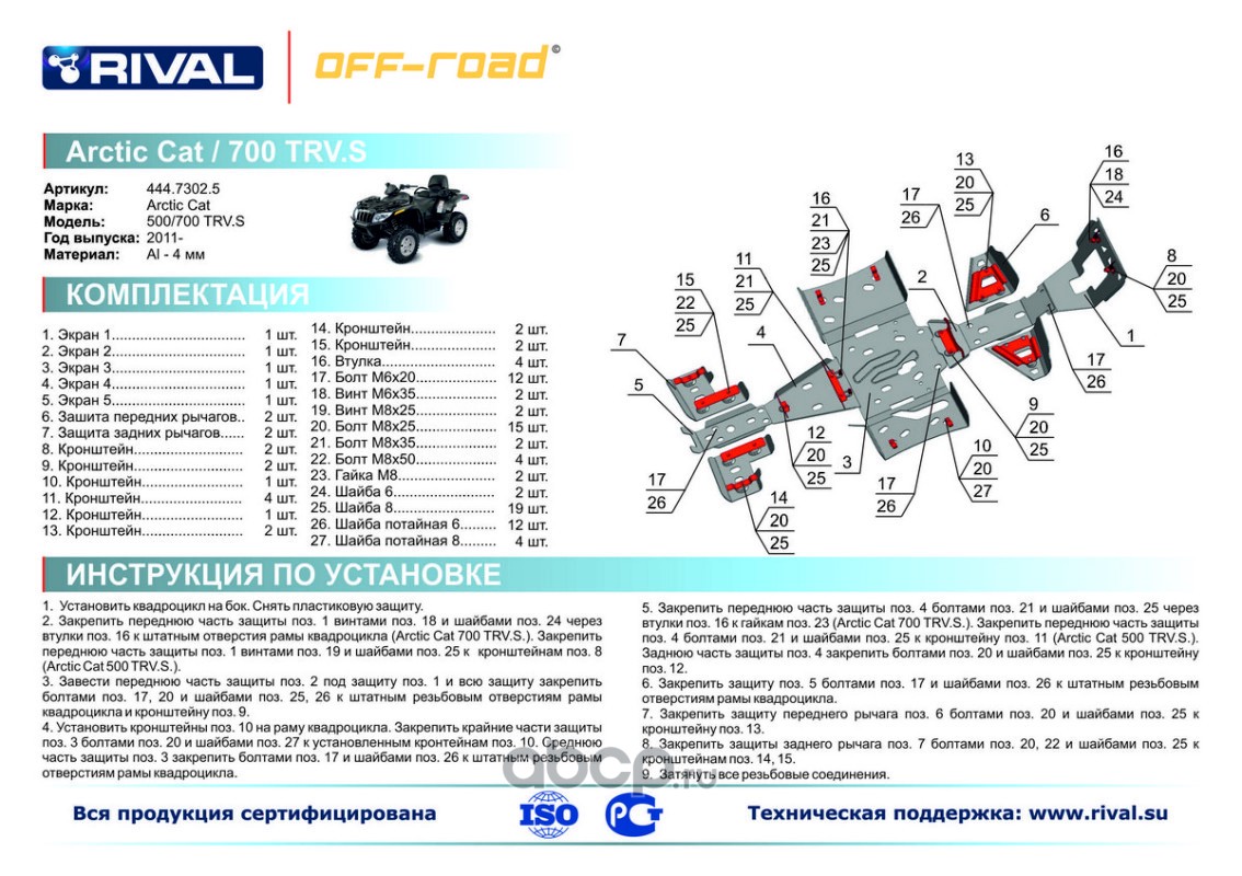 Защита картера и порогов (часть 1) Rival для Artic Cat ATV 700/500 TRV 2011-2015, 4.7302.5-3