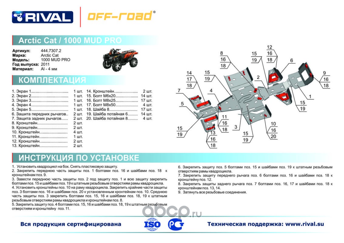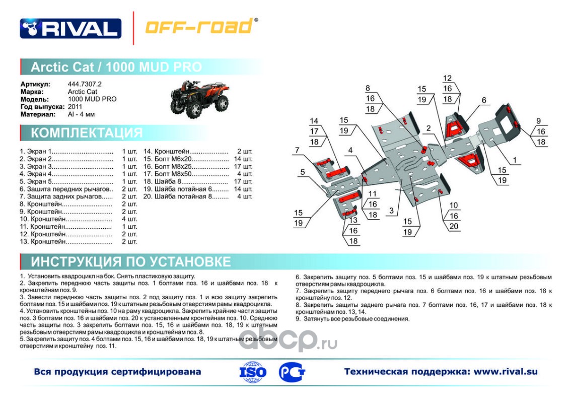 Защита картера и порогов (часть 1) Rival для Artic Cat ATV MUDPRO 1000 2011-2015, 4.7307.2-3