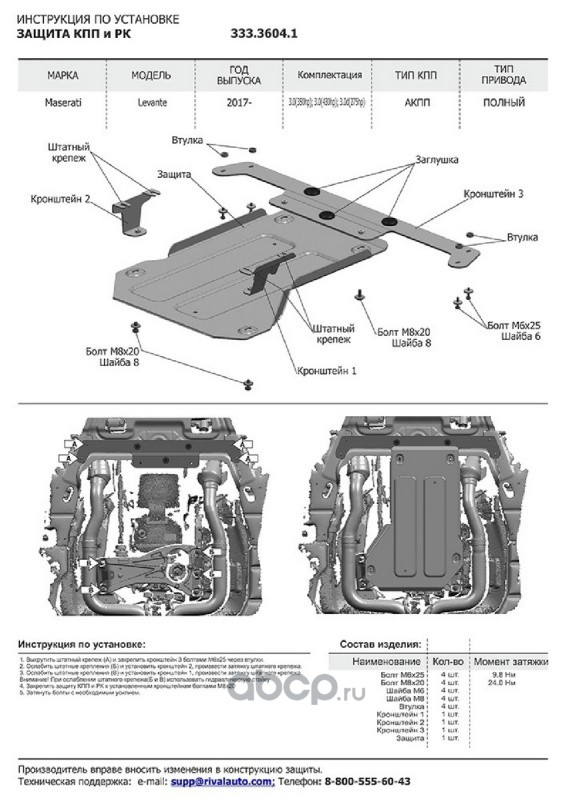 Защита КПП, РК Maserati Levante 2017-, 333.3604.1