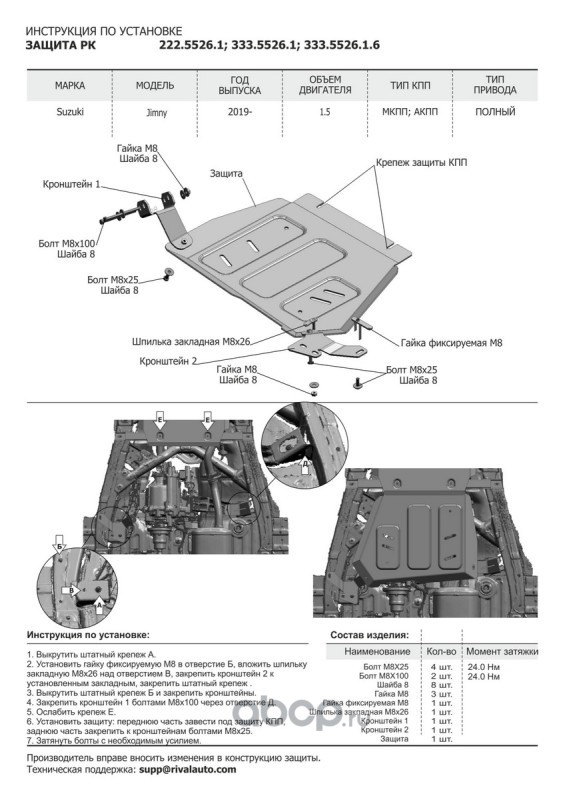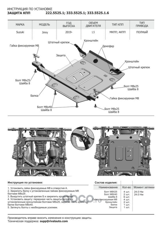 | Rival | 22255251 | Защита КПП Suzuki Jimny (V-1.5) 2019- | ||