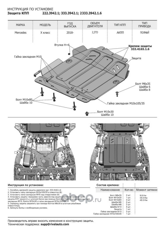 | Rival | 2333394216 | Защита КПП Mercedes X-klasse 4WD 17- 2333.3942.1.6 | ||