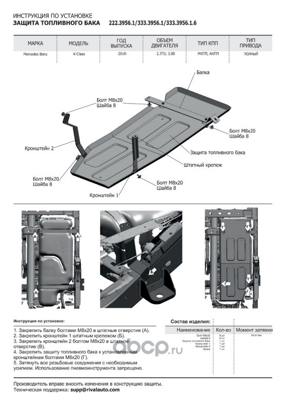 | Rival | 22239561 | Защ.топл. бака Mercedes X-kl. 4WD 2017-, st 3mm | ||