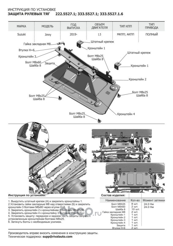 | Rival | 22255271 | Защита рулевых тяг Suzuki Jimny, 2019- | ||