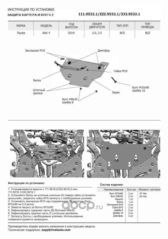 | Rival | 11195321 | ЗК+КПП ч.2 Toyota Rav4 XA50 2019- | ||