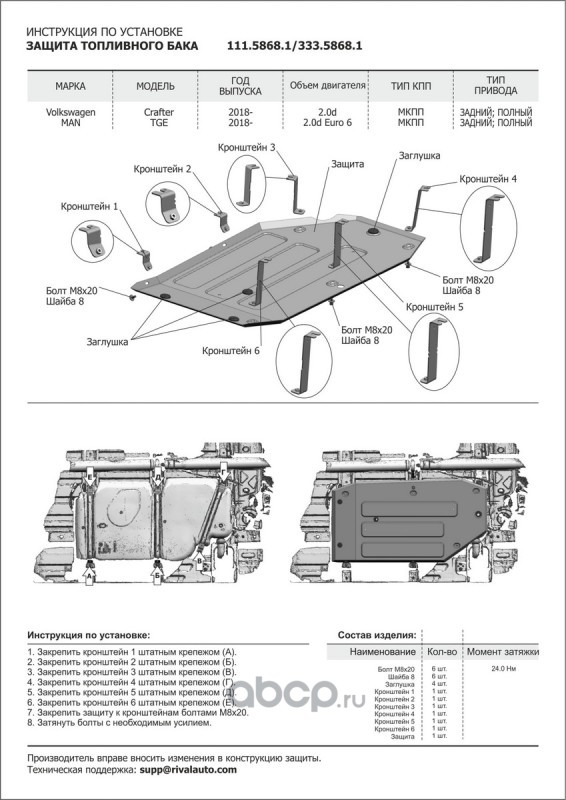 | Rival | 11158681 | Защ.топл.бака Man TGE/VW Crafter RWD/4WD 2018- | ||