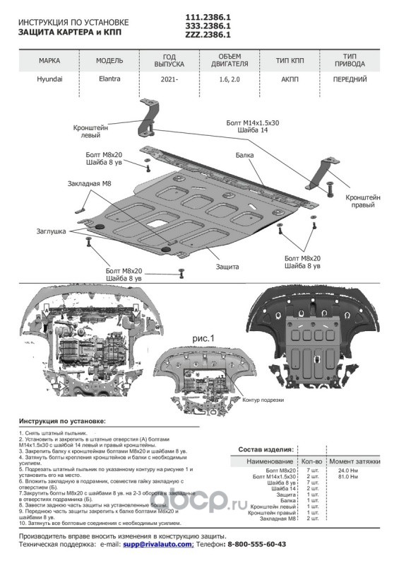 ЗК+КПП Hyundai Elantra VII 2021-, al 3mm