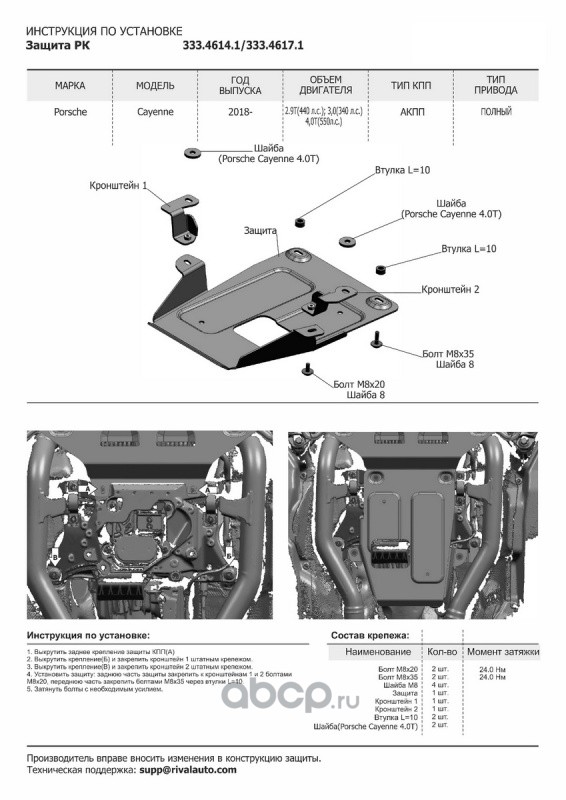 ЗК+КПП+РК черн. Porsche Cayenne III 2017-, al 4mm