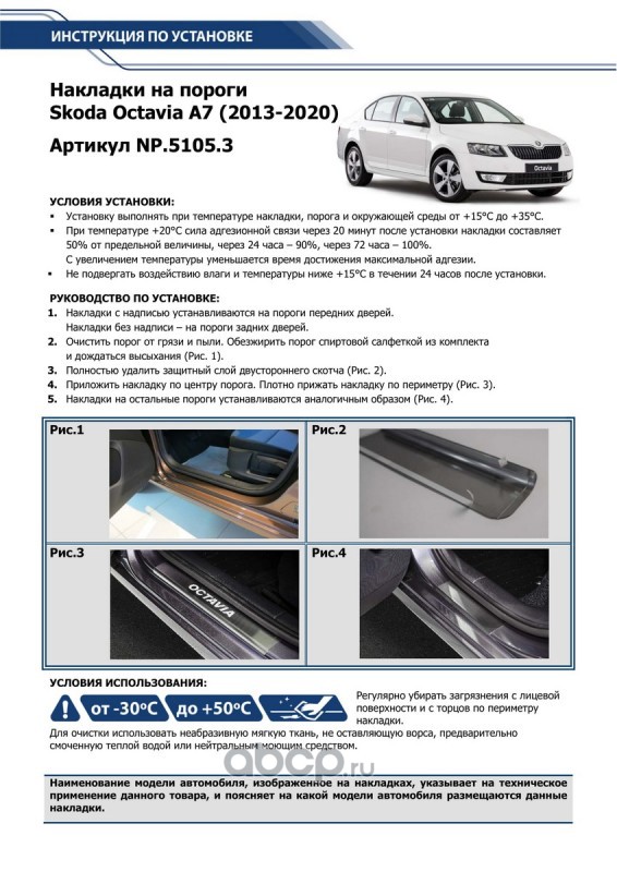Накладки на пороги Skoda Octavia A7 2013-2019