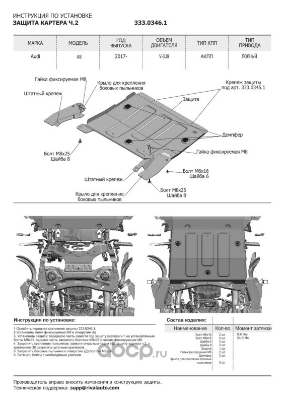 Защита картера Audi A8 D5 2017-, 3 ч., 333.0346.1