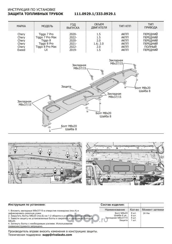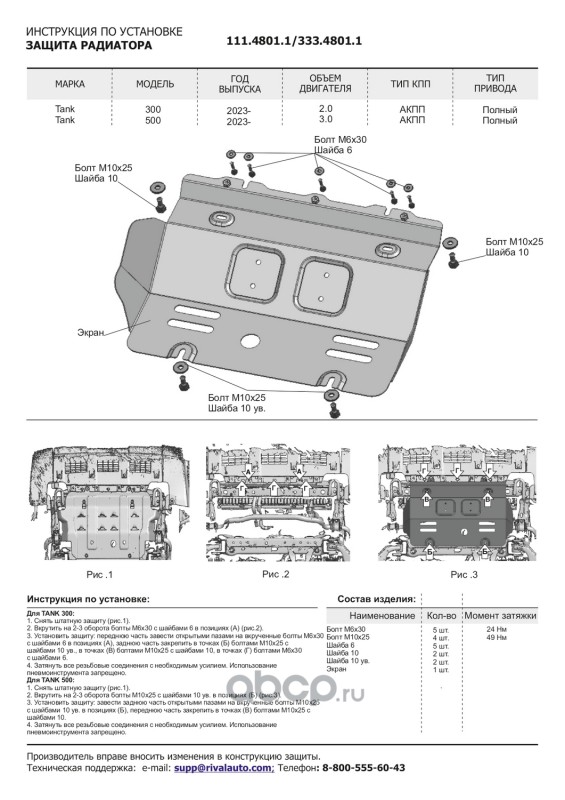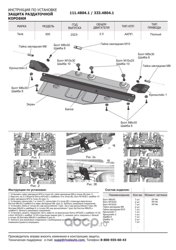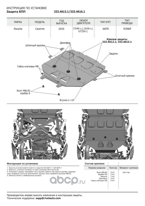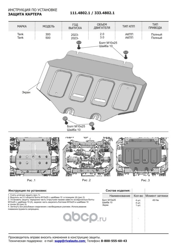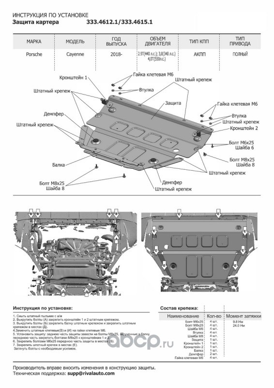 Защита картера и КПП, сталь 1.5 мм, с крепежом, штампованная
