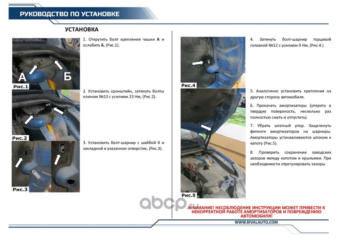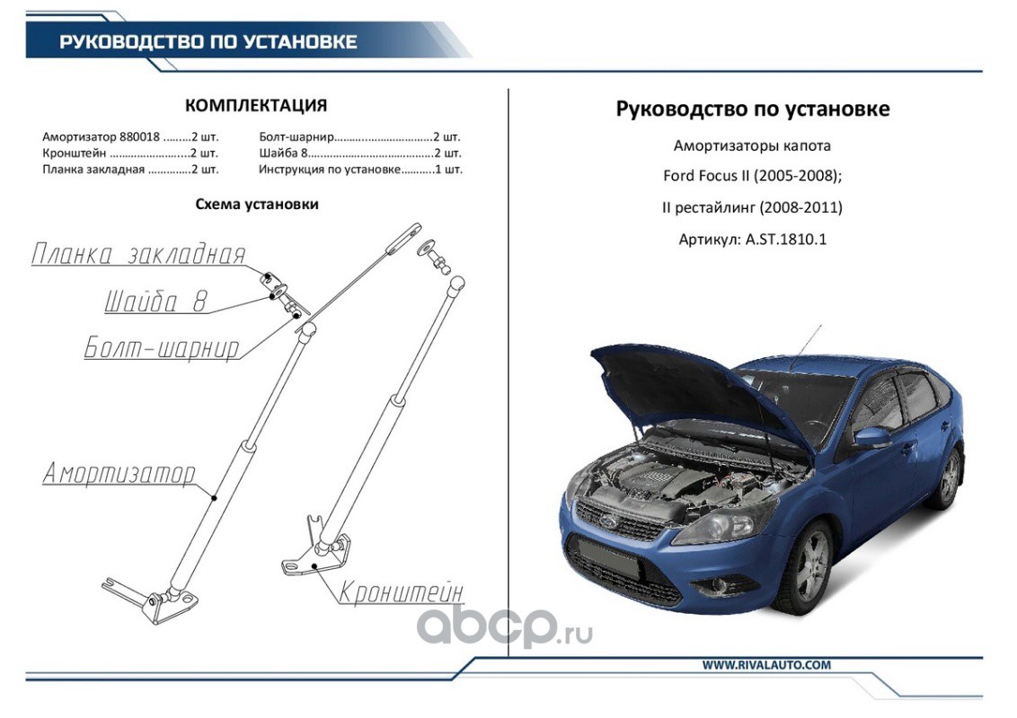 | Rival | AST18101 | Упоры капота Ford Focus II 05-08 08-11, 2 шт. | ||
