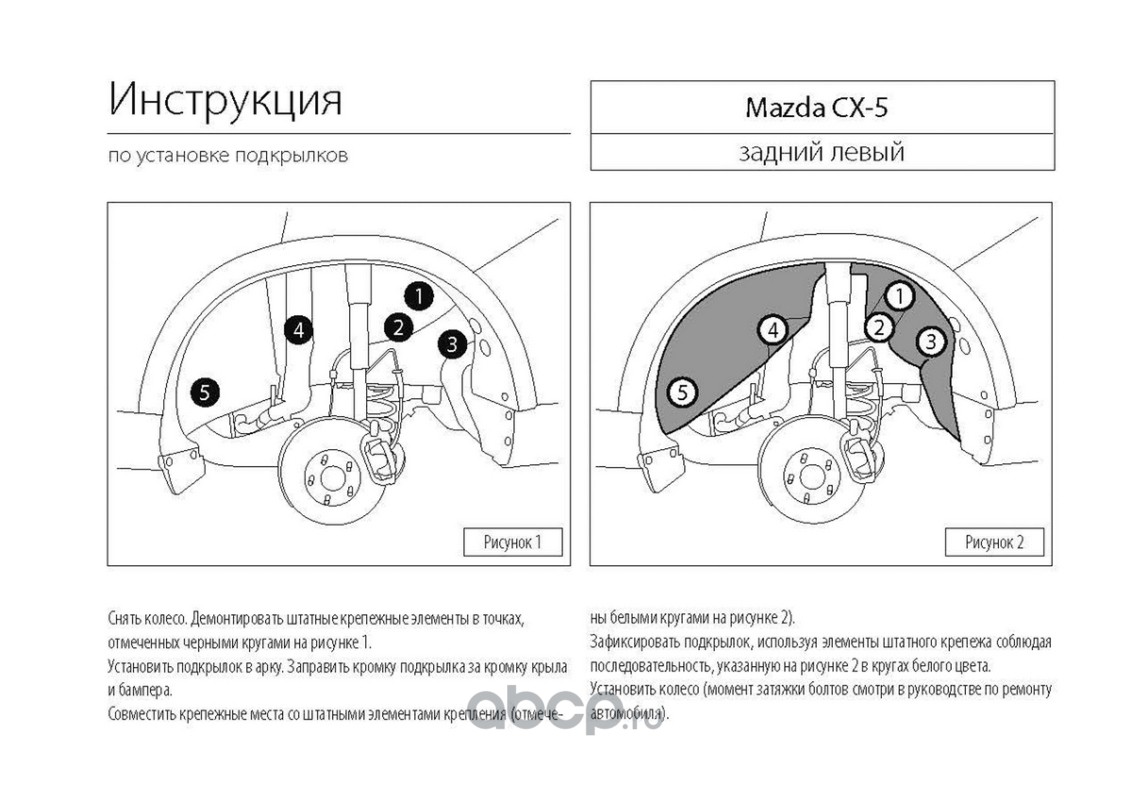 | Rival | 43803001 | Подкрылок задн.лев.Mazda CX-5 I 11-17, без крепежа | ||