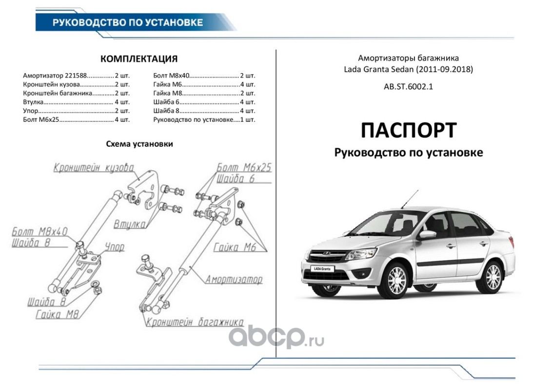 | Rival | ABST60021 | Амортизаторы багажника Lada Granta SD 11-18, 2 шт. | ||