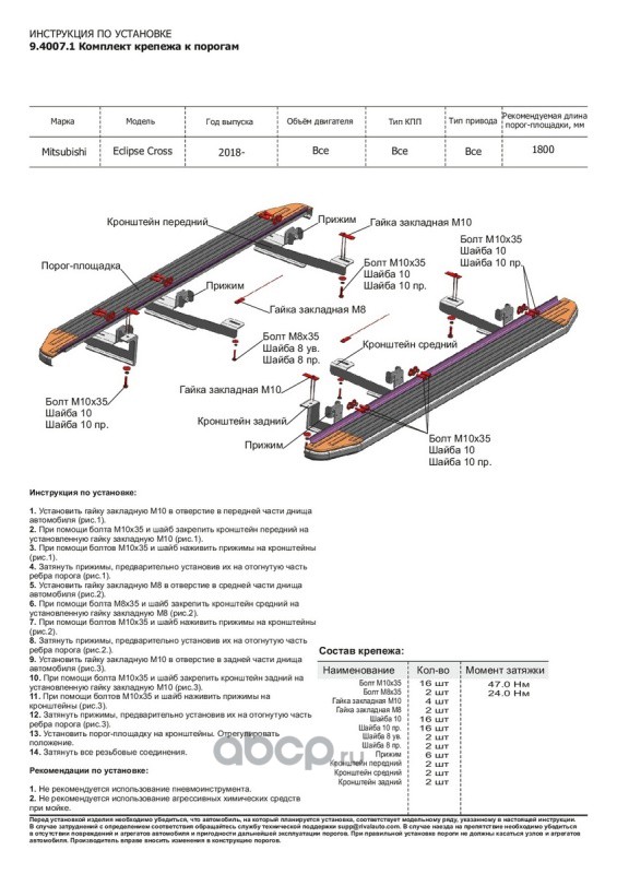 | Rival | D180AL40071 | Пороги Bmw-Style круг Mitsub. Eclipse Cross 18-21 | ||