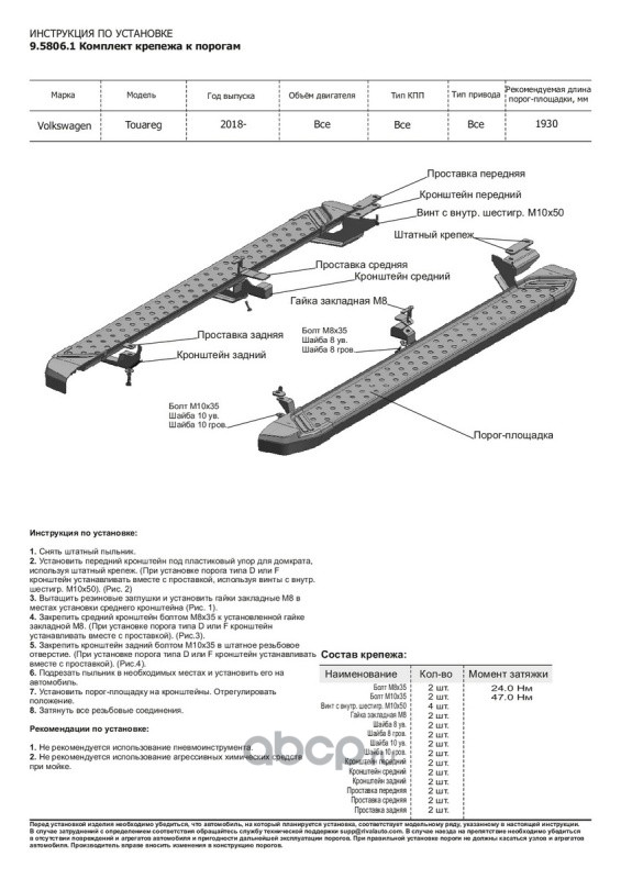 | Rival | A193ALP58061 | Пороги Premium VW Touareg III 2018-, 193 см, al | ||