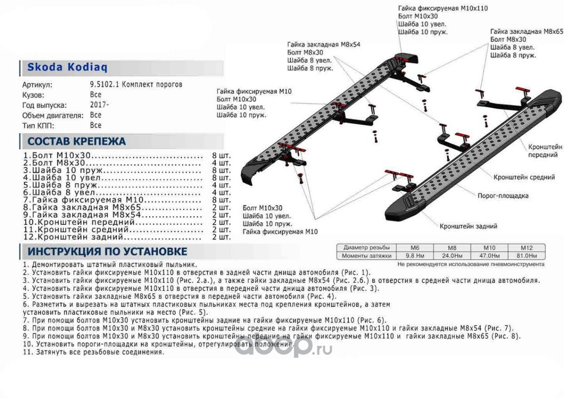 | Rival | F180ALB51022 | Пороги Black Skoda Kodiaq II 2017-, 180 см, al | ||