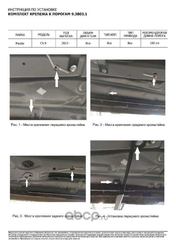 | Rival | A193ALB38031 | Пороги Premium-Black Mazda CX-9 II 17-, 193 см, al | ||