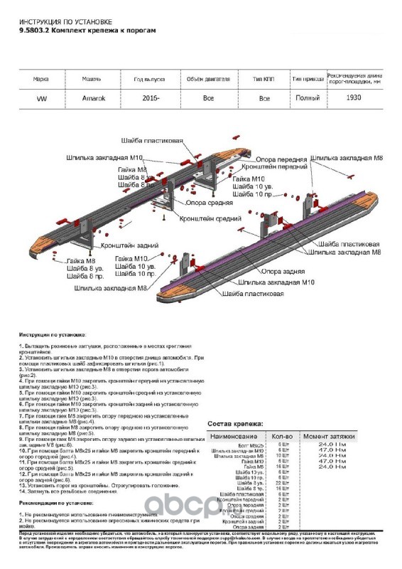 | Rival | F193AL58032 | Пороги Silver VW Amarok I 2016-2019, 193 см, al | ||