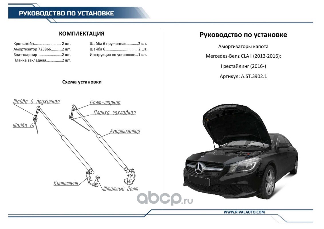 | Rival | AST39021 | Упоры капота Mercedes-Benz CLA-klasse 13-19, 2 шт. | ||