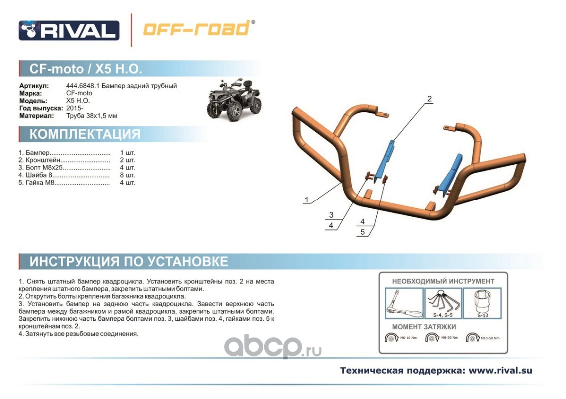 Защита задних рычагов Rival для CF Moto ATV X4 2016-, 4.6868.1-5