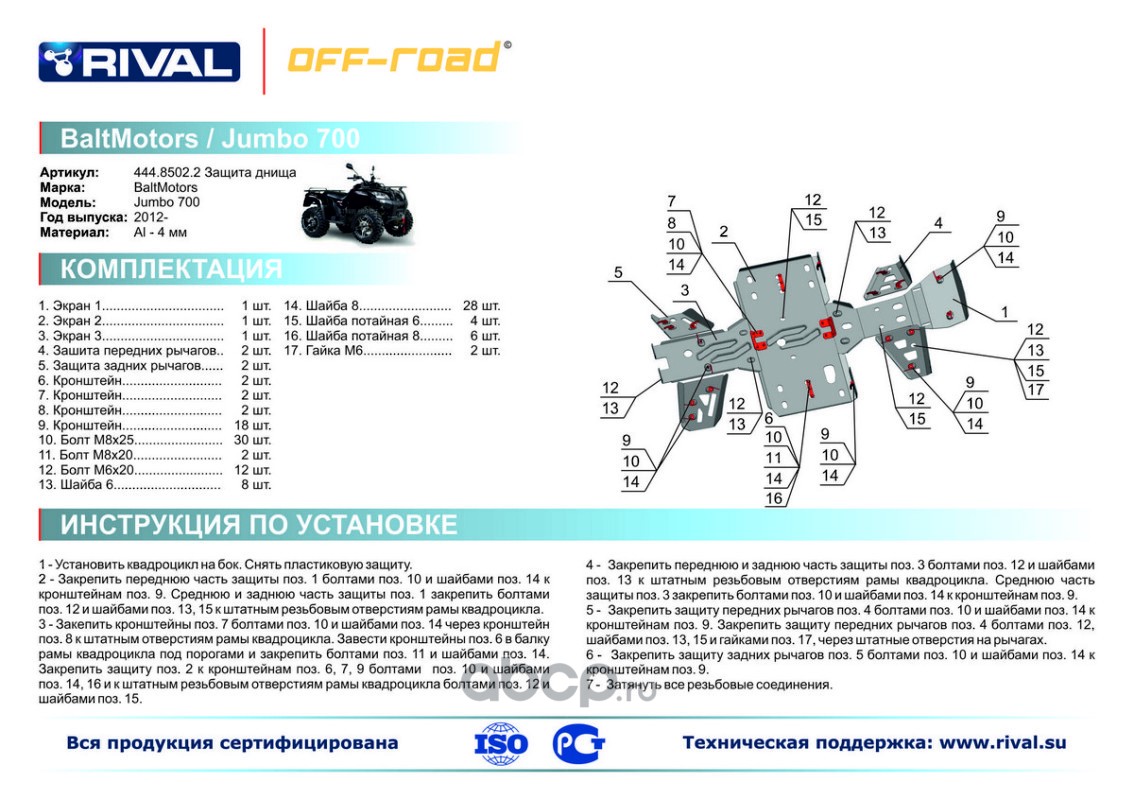 Защита задних рычагов Rival для BaltMotors Jumbo 700 2012-, 4.8502.2-5