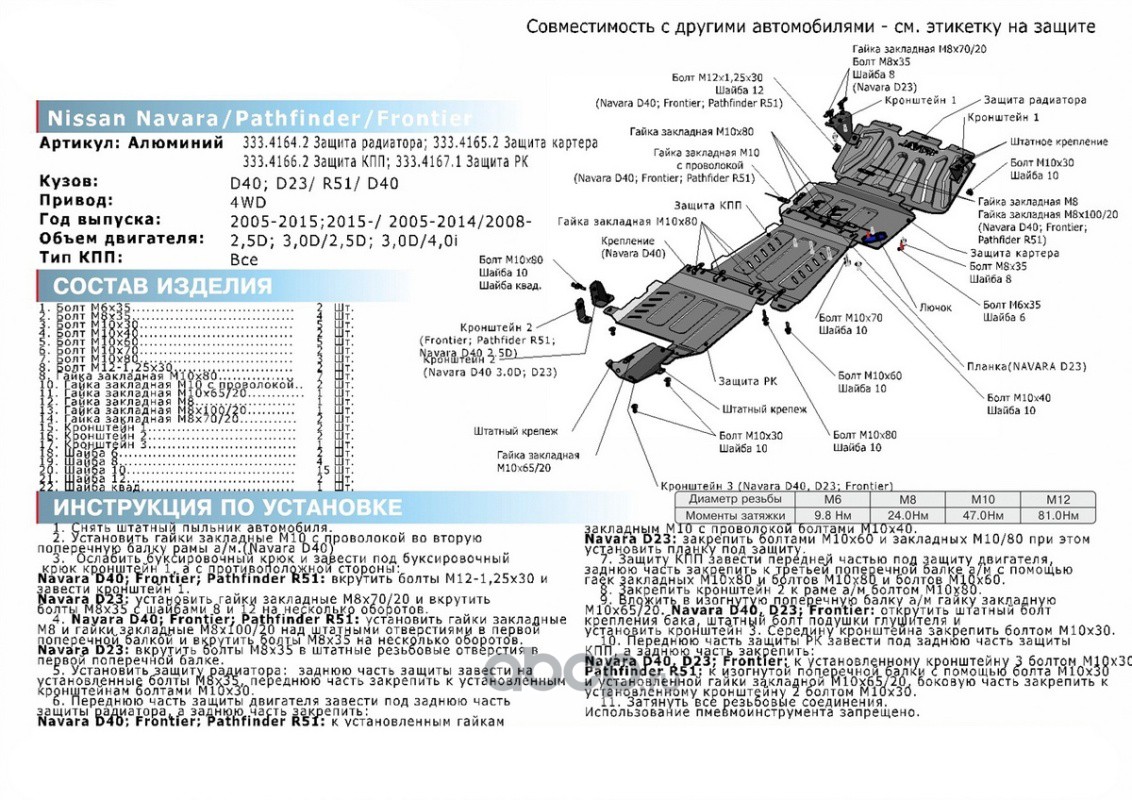 | Rival | K22239421 | К-т защит Mercedes X-kl. 4WD 17-, st 3mm, 4 части | ||