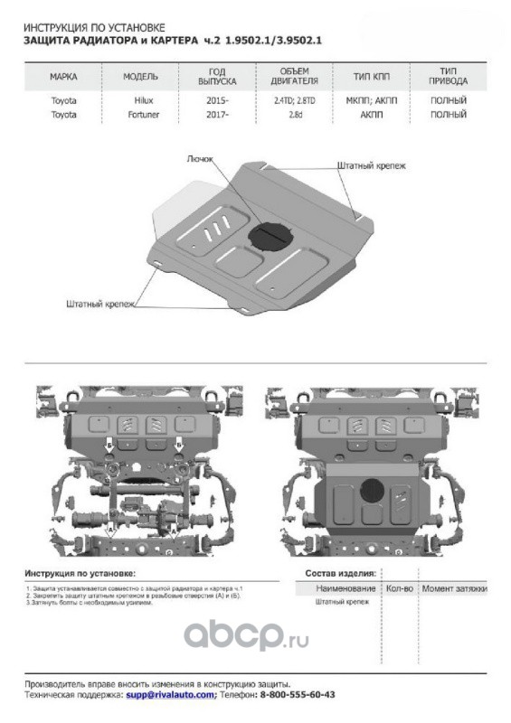 | Rival | 11140482 | Защита РК сталь 1.8 мм, с крепежом, штампованная | ||