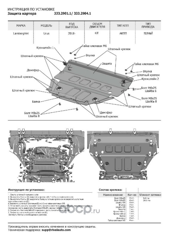 | Rival | 33329011 | Защита картера Lamborghini Urus 2017-, al 4mm | ||